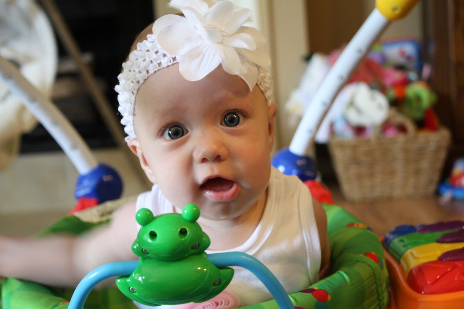 Well, in the past week or so, Elizabeth has discovered how to work her vocal chords. So now, whenever she wakes up at night and all throughout the day, we get to listen to her screeching and shrieking. It' is rather cute, for the most part! I'm just glad that she wakes up happy now. :) Sometimes when she's fussy, she'll go from fussing to screeching, so I'm not always sure if she's unhappy or just playing around with her voice. If we had a video camera, I'd try and get it on tape, but since we don't, I have to e content with pictures of it.