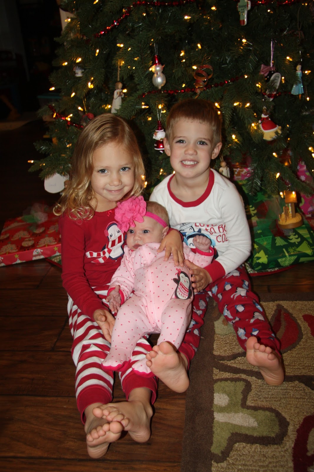 I have been doing a better job of getting my camera out lately and decided that I needed some more pictures of our precious three kiddos... Both the big kids LOVE holding Rebekah Jo, so I made sure to take some with them holding her, as well as some with all three kiddos.